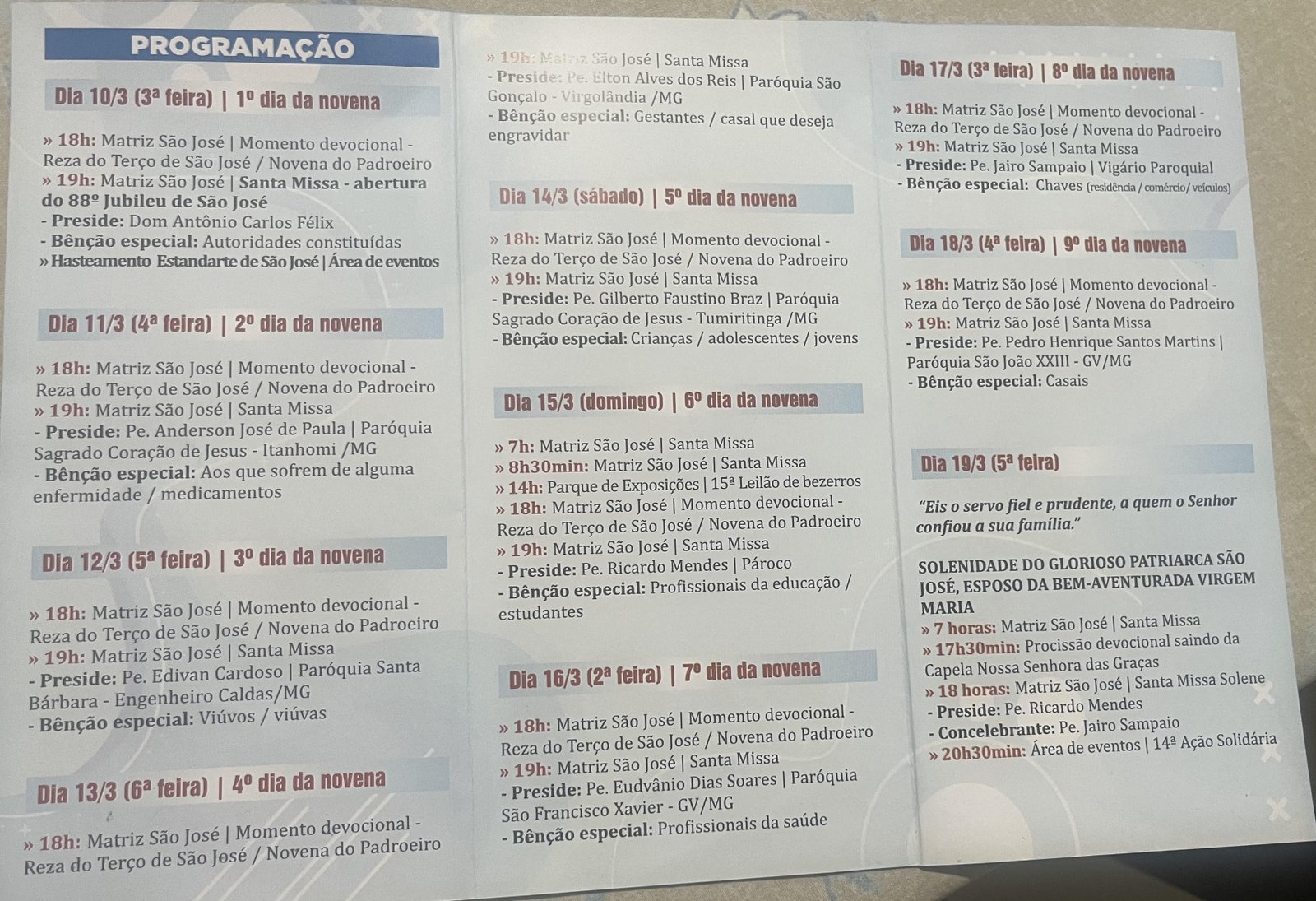 - Gostei de ver o Cantor Nícolas, de quem eu gosto muito, bastante contrito na missa de São Braz na Matriz São José. Claro, protegendo a garganta de Ouro.