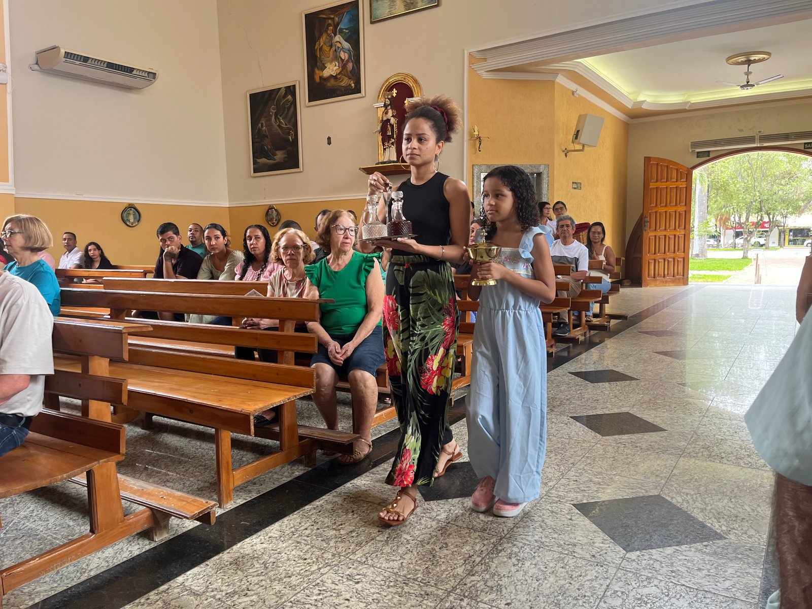 - Novidade na nossa igreja católica: Caso tenha esquecido o dinheiro da oferta, nos bancos da igreja encontra-se à disposição o QR Code para facilitar. Mira, acerte o valor e clica.