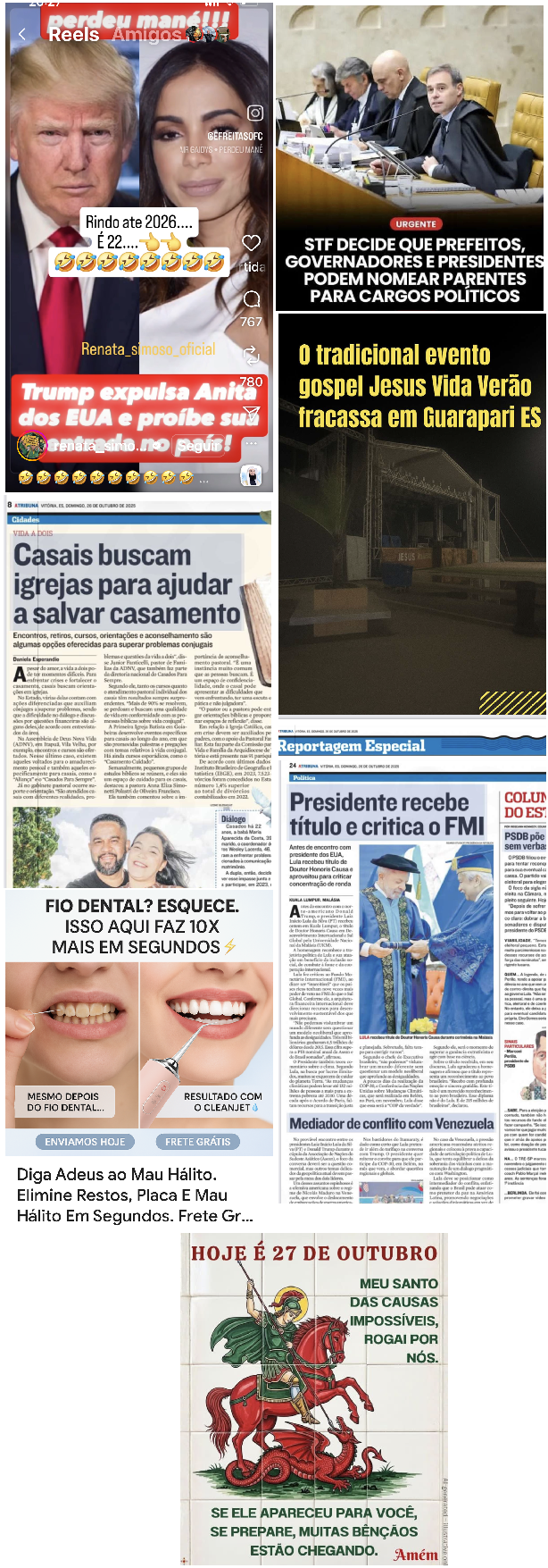 - O Presidente Lula visitou recentemente em Roma o Papa Leão XIV. A imprensa ficou de fora. Só divulgou a foto do encontro. Motivo? Sei lá!