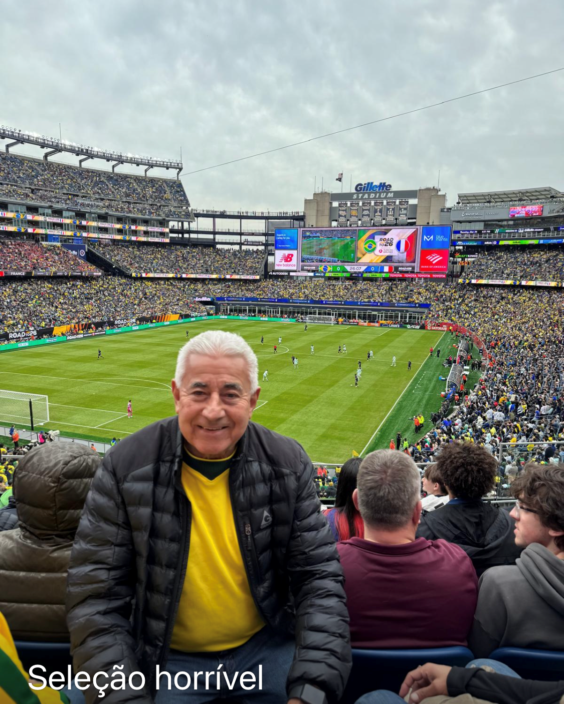 - Em Boston, semana passada, 67 mil torcedores foram aplaudir a seleção brasileira. Decepção geral. Alguns Conselheiro Penenses enviaram fotos.