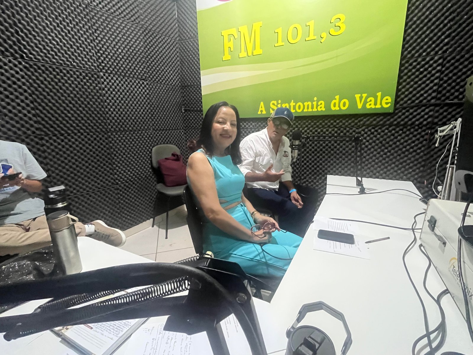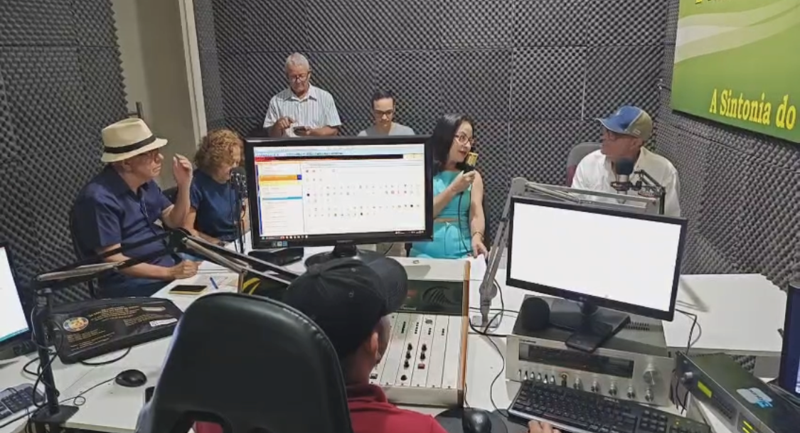 Agenda lotada. Nosso estúdio esteve pequeno para acomodar tantos convidados.  Lucia Helena, conterrânea que hoje reside na grande Vitória, foi parabenizada porque é Gemóloga, policial aposentada, radialista e na prancheta um filme sobre a nossa cidade. Quando pedimos para citar 5 personagens do passado e presente de nossa cidade, ela citou: Padre Geraldo; Juracy Cavalcante; seus pai; Nádia e EU. Claro que gostei. Já sou personalidade da minha cidade.