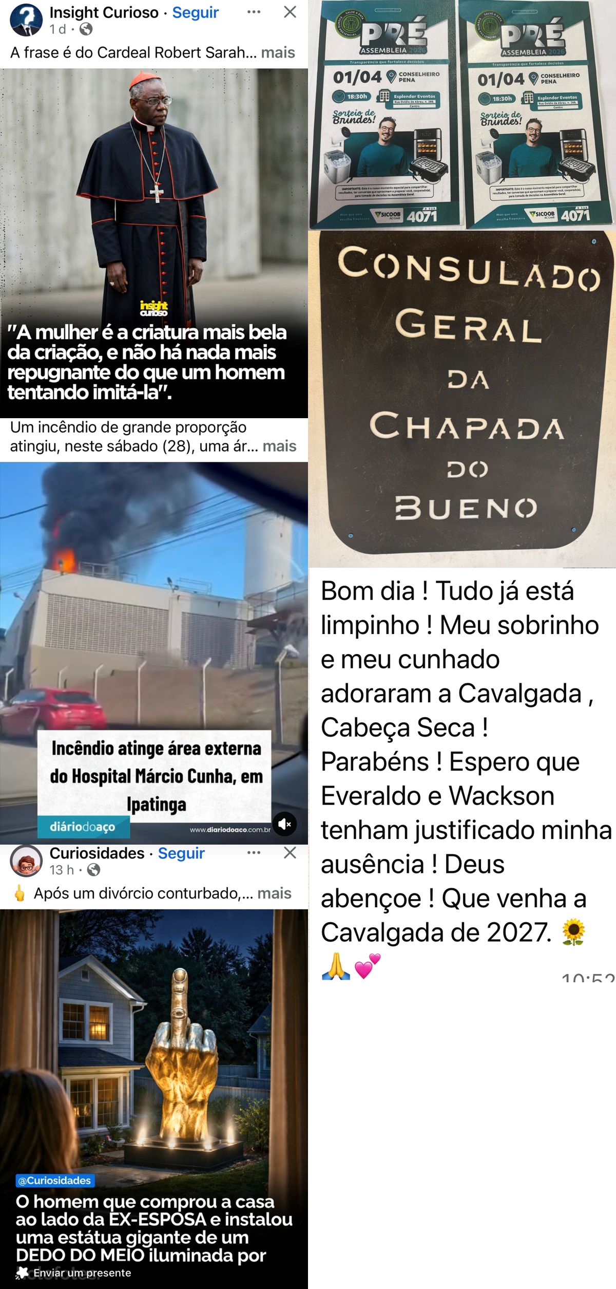 - Cal, aquele centroavante matador, ex-profissional de futebol e que defendeu alguns times profissionais do Brasil, e que  esteve por um tempo com a saúde abalada, foi visto no Carnaval e na praça central. Sinal que já sarou. Muito bom. Graças a Deus!