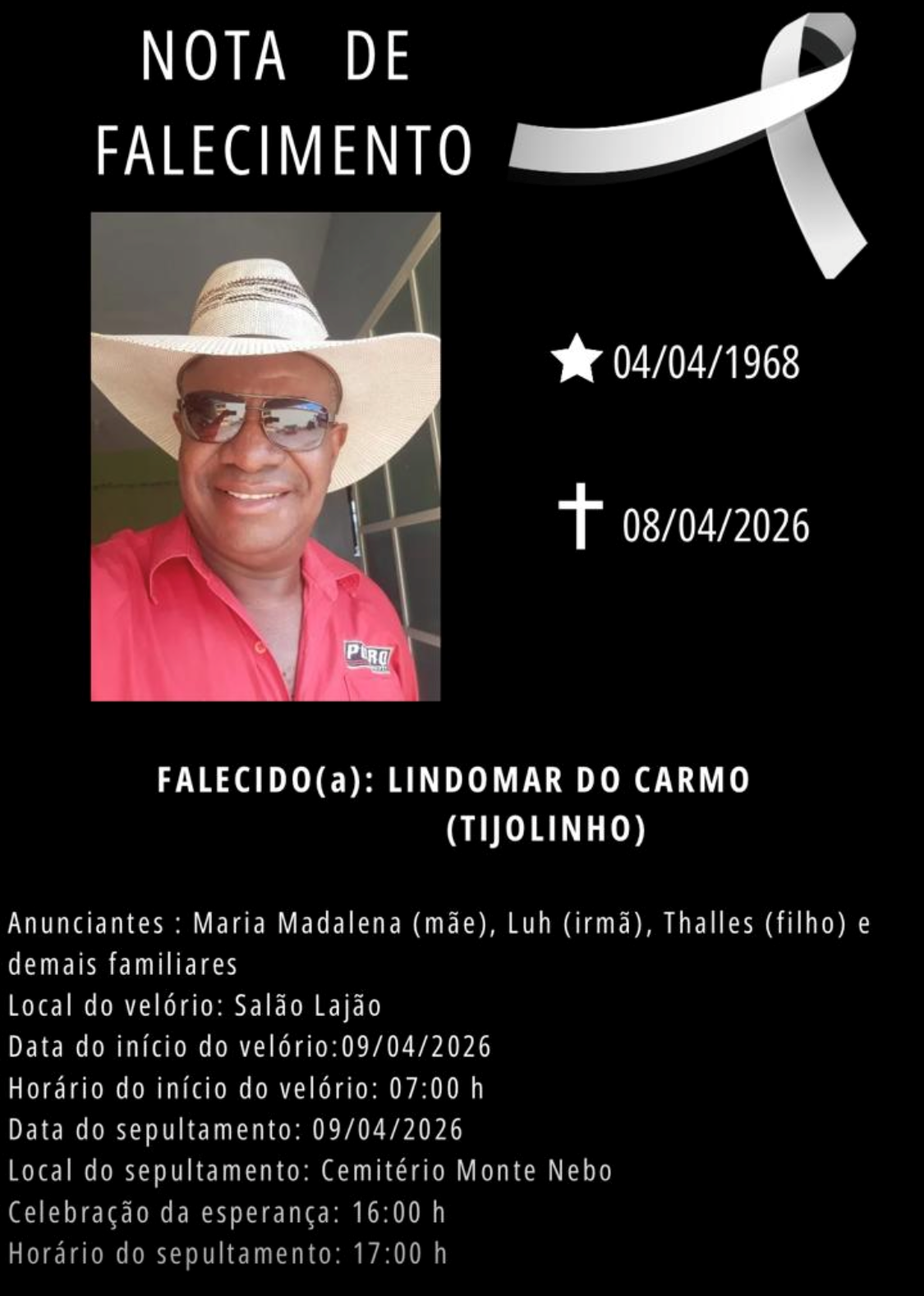 16/04 Margareth Pereira do Washington da Padaria