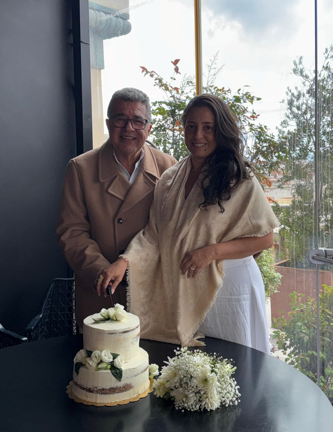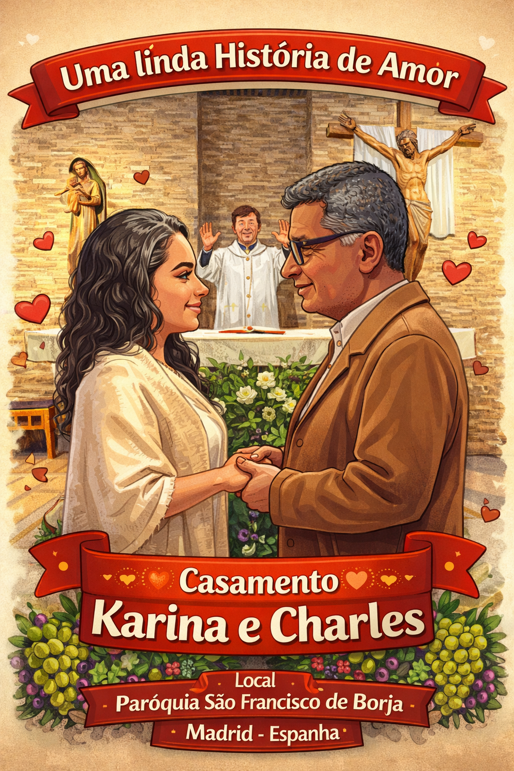 Sob os auspícios do endinheirado filho Charlinho, os noivos foram receber as bênçãos do Sacramento do Matrimônio, na Espanha.